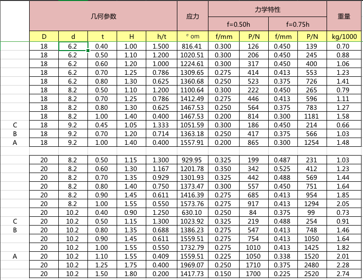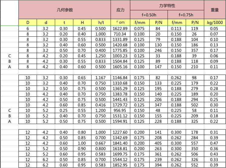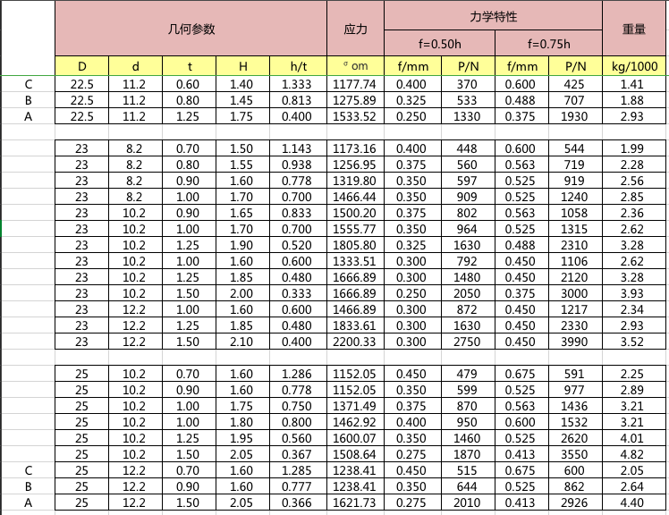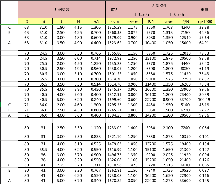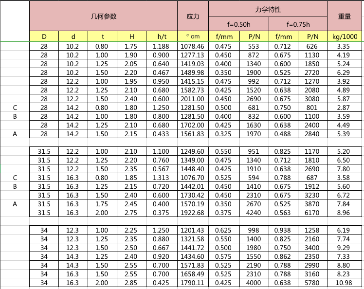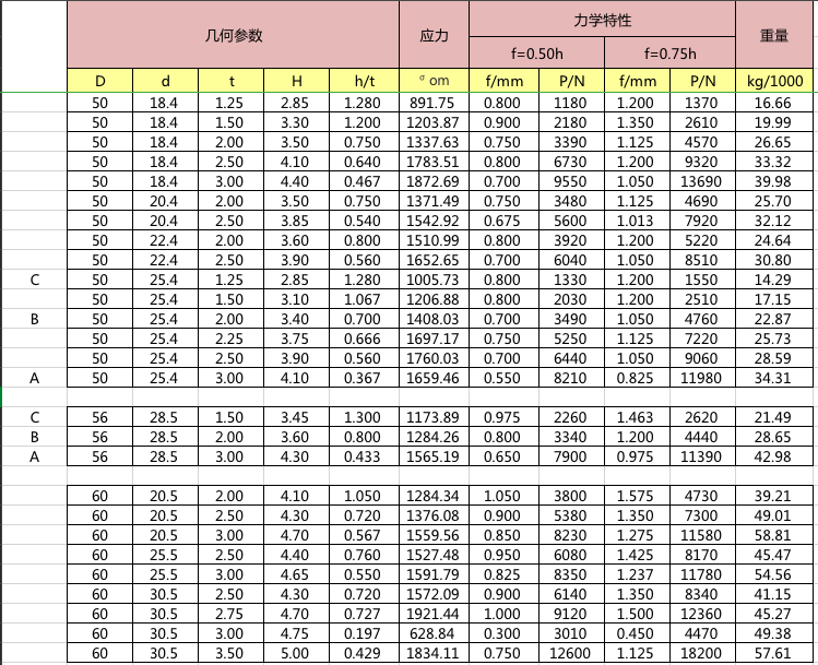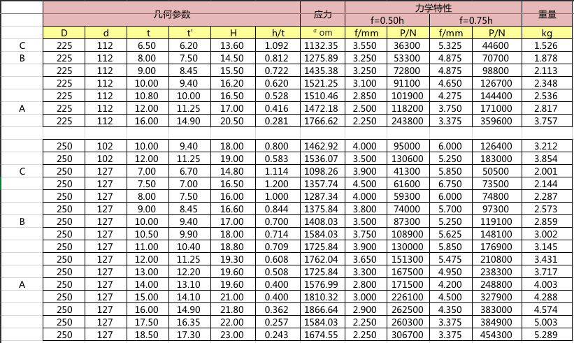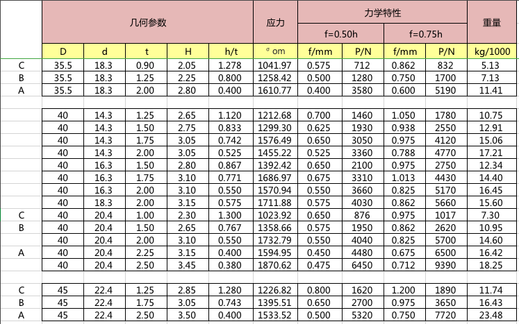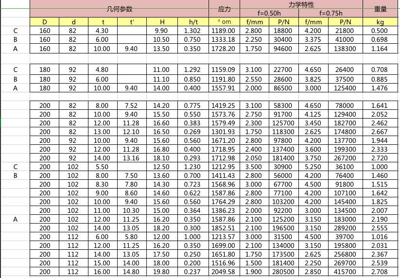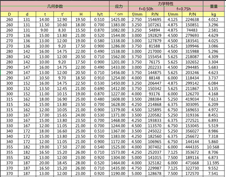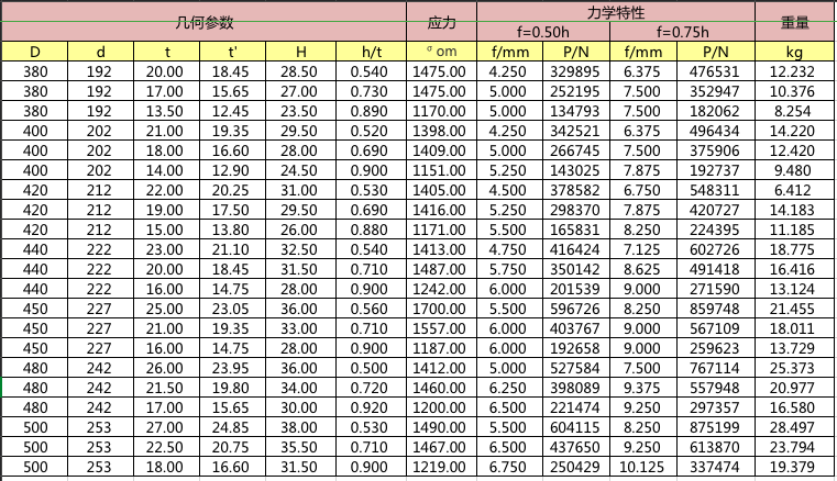 碟簧參數(shù)表--揚(yáng)州邵星彈簧制造有限公司